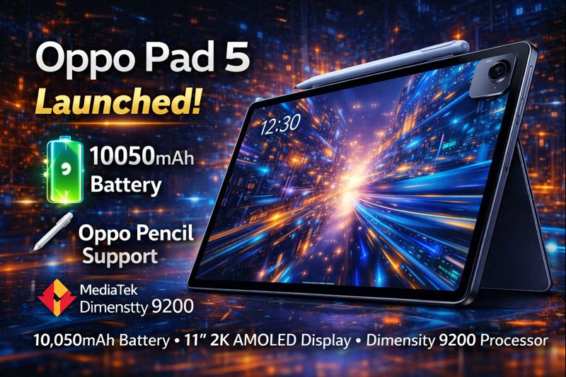 ЁЯУ▒ Oppo Pad 5 рд▓реЙрдиреНрдЪ: 10,050mAh рдмреИрдЯрд░реА рдФрд░ рдкреЗрдВрд╕рд┐рд▓ рд╕рдкреЛрд░реНрдЯ рдХреЗ рд╕рд╛рде тАУ рдХреАрдордд, рд╕реНрдкреЗрд╕рд┐рдлрд┐рдХреЗрд╢рди рдФрд░ рдлреАрдЪрд░реНрд╕
