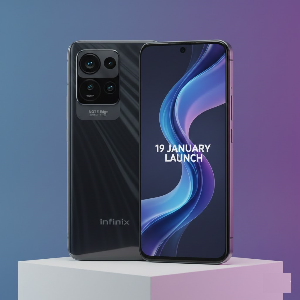 Infinix NOTE Edge 19 जनवरी 2026 को लॉन्च होगा। Dimensity 7100, 108MP कैमरा, AMOLED डिस्प्ले और लंबी बैटरी के साथ वर्ल्ड फर्स्ट स्मार्टफोन।